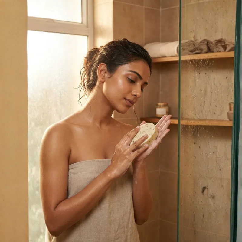 A handmade brightening soap that gently exfoliates while nourishing the skin with natural oils. Helps remove dullness, enhance glow, and improve skin texture without drying.