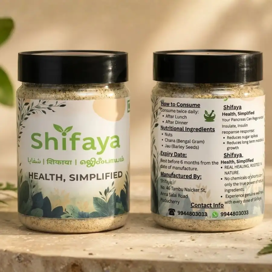 Natural Wellness blend crafted to support healthy sugar balance, Shifaya Diabetes Supplement Powder is a holistic formulation designed to nourish the body from within and help maintain optimal glucose levels naturally. Made with a synergistic combination of age-old Ayurvedic herbs and nutrient-rich botanicals, this blend supports pancreatic function, enhances insulin efficiency, and promotes balanced energy throughout the day.